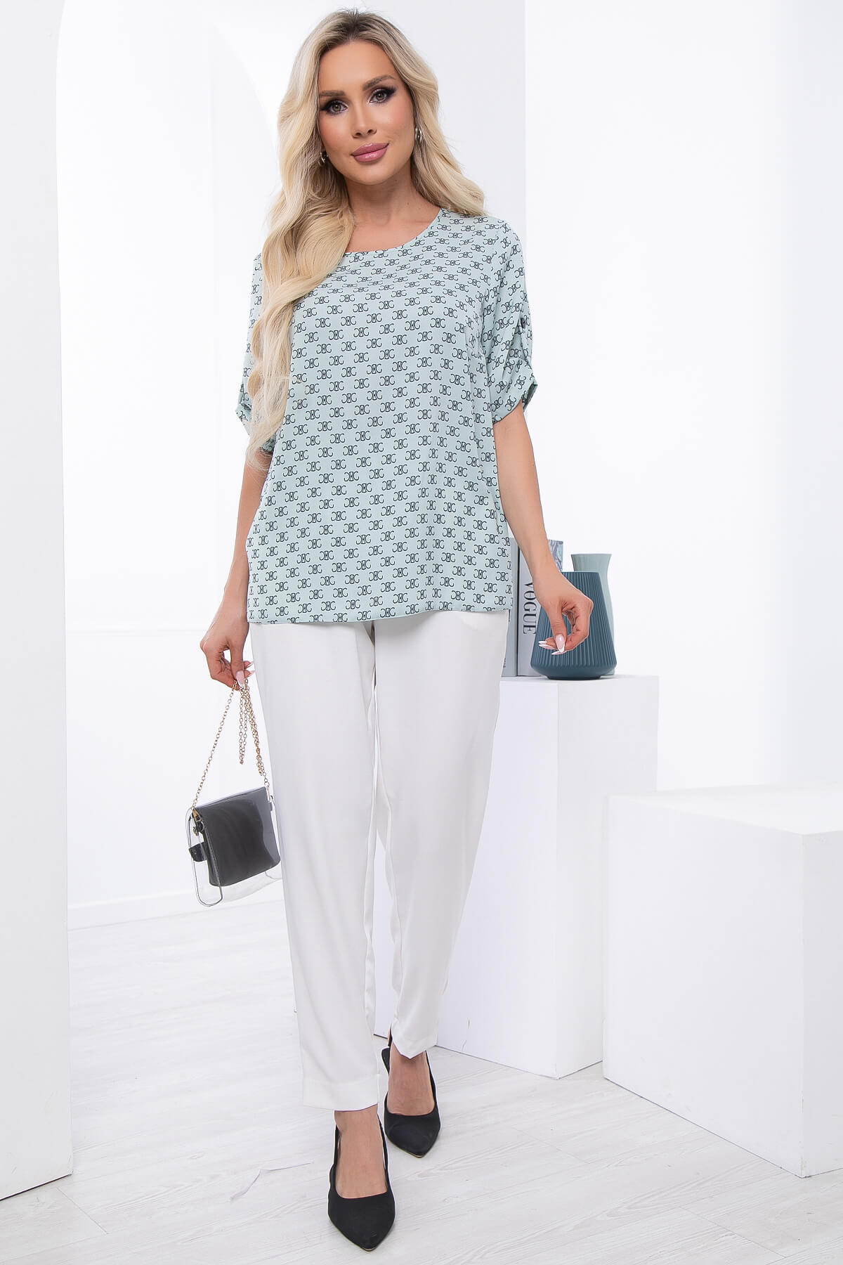 Блуза прямого кроя, вырез горловины округлый. Рукав втачной, украшен патой с пуговкой.