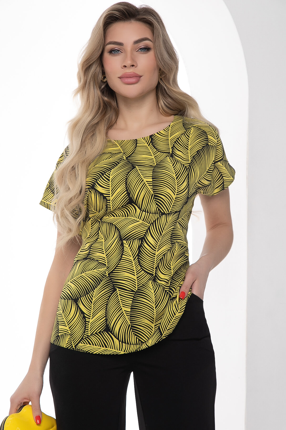 Стильная блуза, которая позволит подчеркнуть все тонкости фигуры. Изделие будет отлично смотреться с брюками или с джинсами. Рукав укороченный, цельнокроенный. Пояс из основной ткани вшит в боковые швы изделия: его можно завязать по передней части либо по задней части изделия.