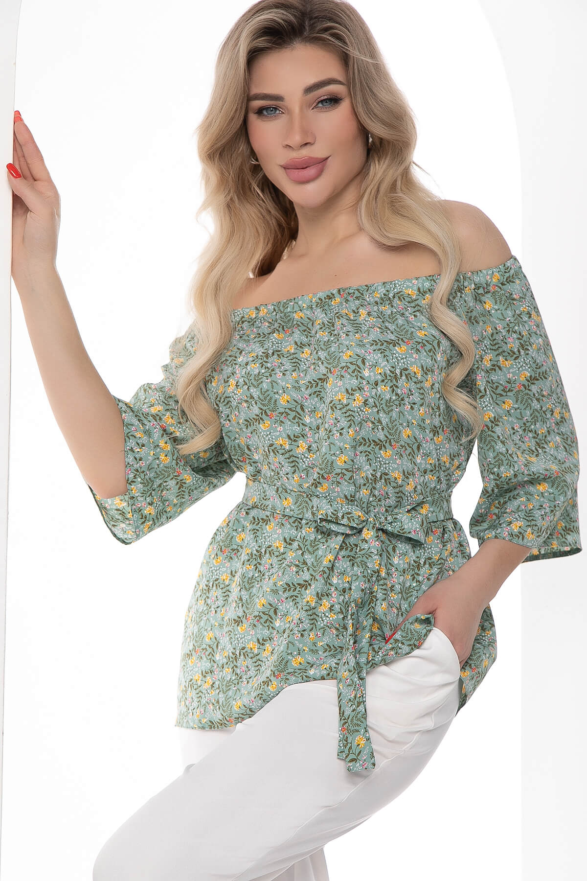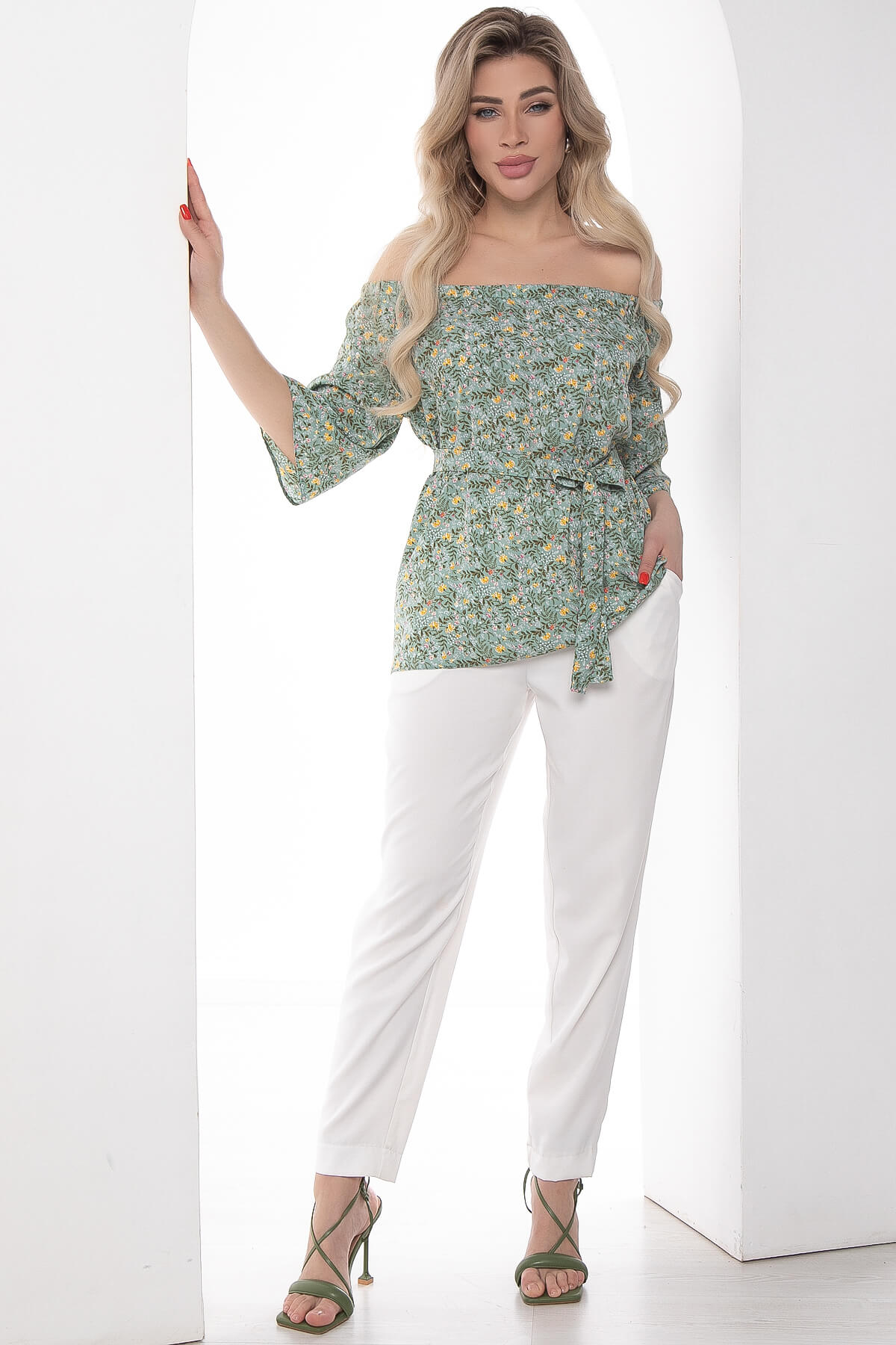 В этом сезоне абсолютно все дизайнеры предлагают открывать одну из самых женственных частей тела - плечи и ключицу. Блуза свободного кроя, горловина обработана резинкой, что позволяет спустить ее на плечи. Рукав три четверти, по низу свободный. В комплект входит пояс из основной ткани, который отлично подчеркнет линию талии!
