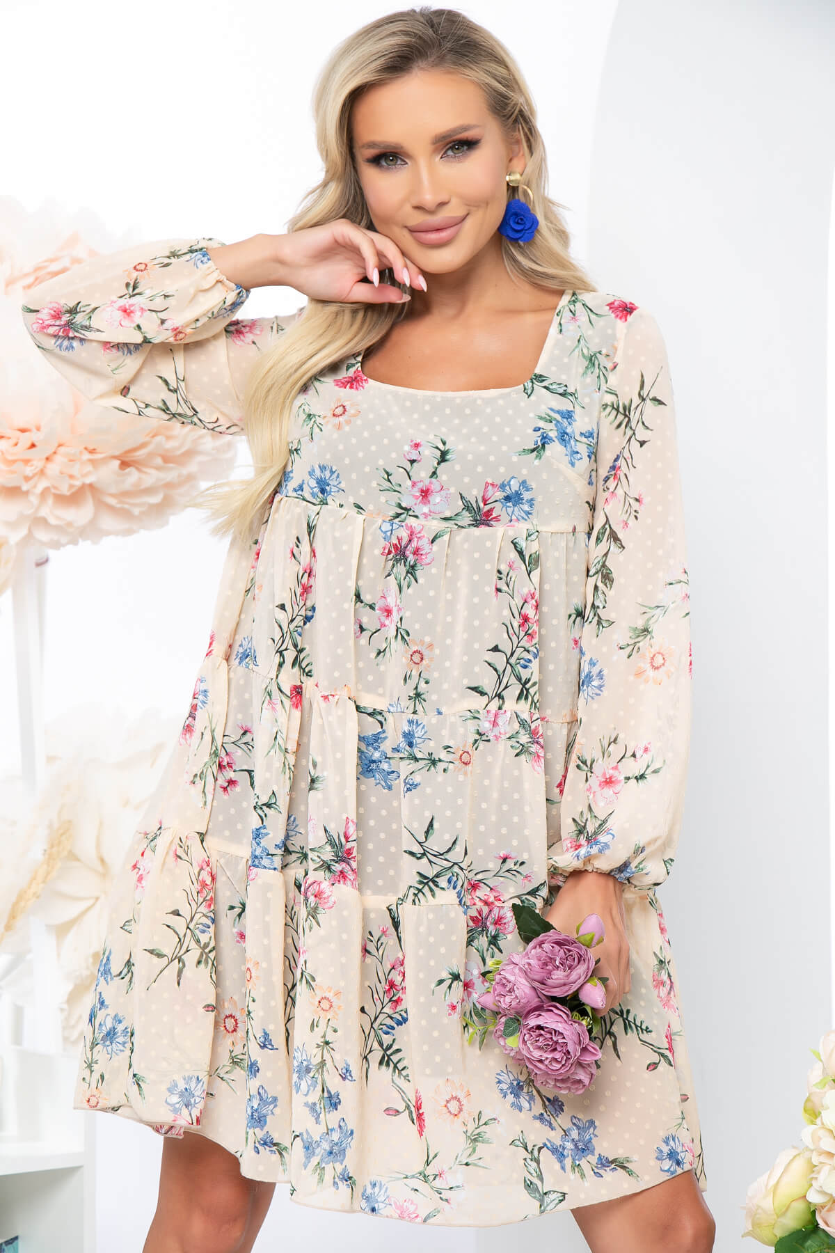 Платье выполнено в немного наивном, чуть кокетливом стиле беби-дол и прекрасно подойдёт для создания нарядного образа.