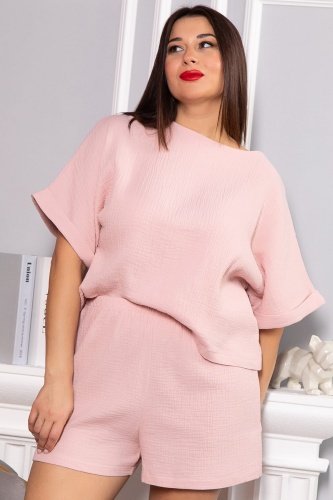 Комплект для дома и отдыха из муслина — это гармоничное сочетание стиля и удобства. Он создан для того, чтобы подарить вам незабываемые моменты расслабления и наслаждения. В комплект входят футболка и шорты, которые идеально сочетаются друг с другом.