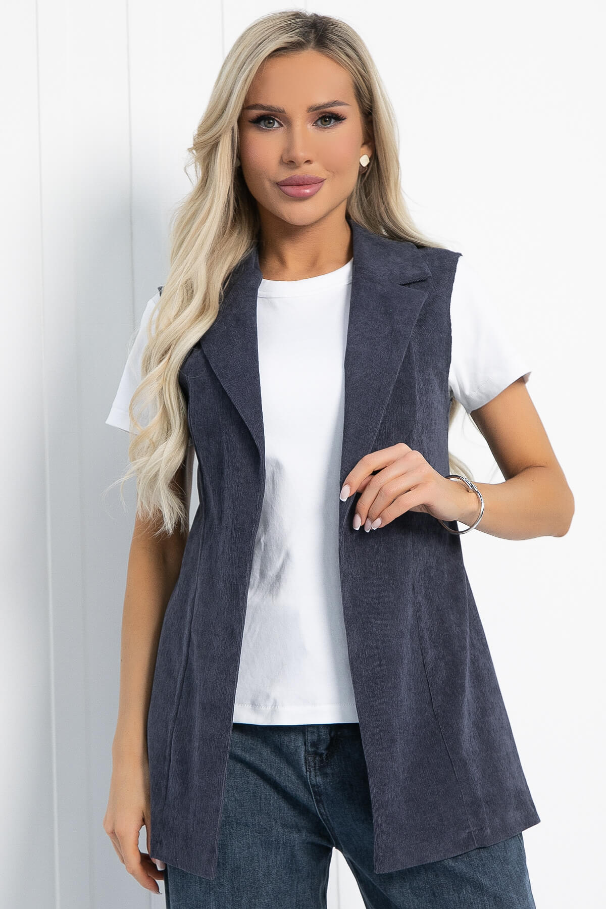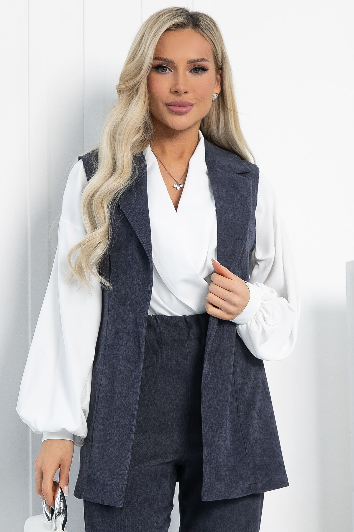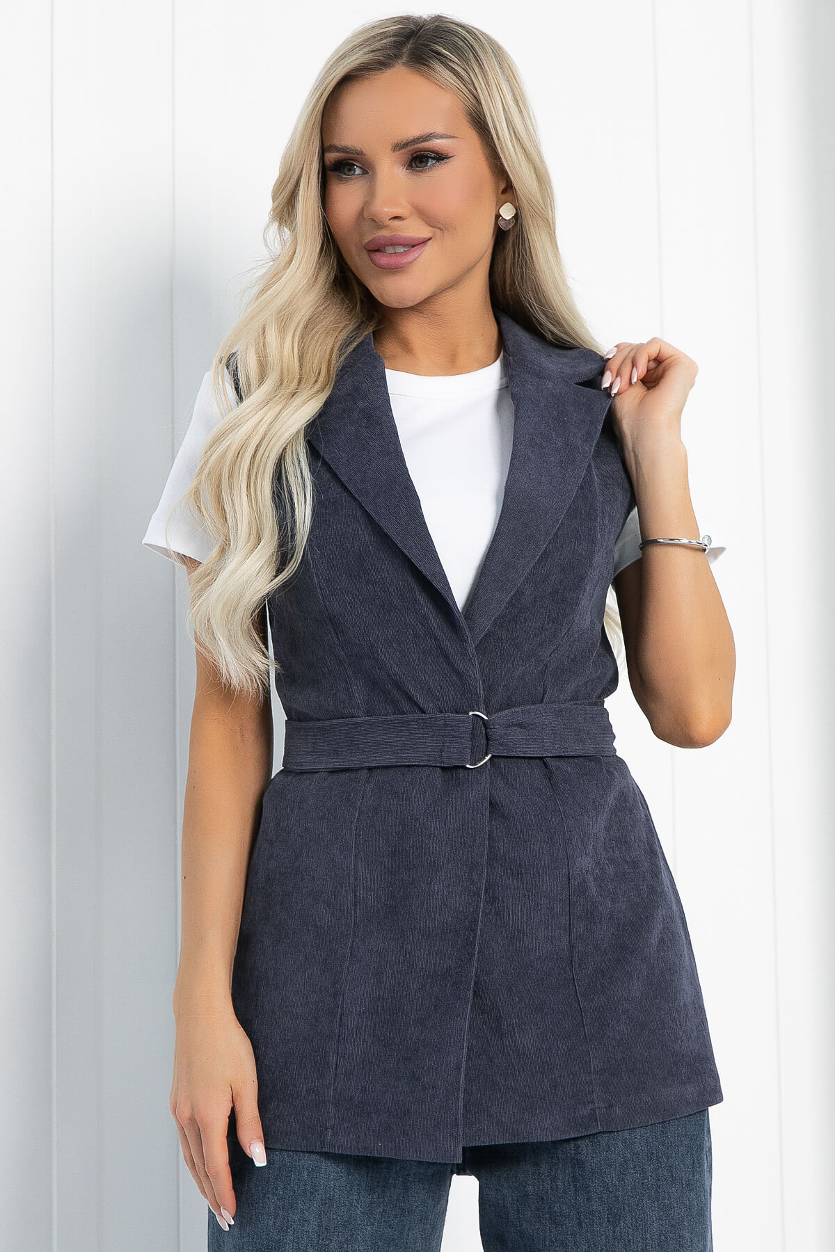 Стильный костюм из жилета и брюк идеально будет смотреться, как в повседневной жизни, так и на деловой встрече. Жилет можно дополнить поясом из основной ткани, который идет в комплекте. С поясом образ получится более утонченный. Жилет без подкладки и без карманов. Оригинальный отложной воротник добавляет элегантности образу. Брюки классические по талии на резинке.