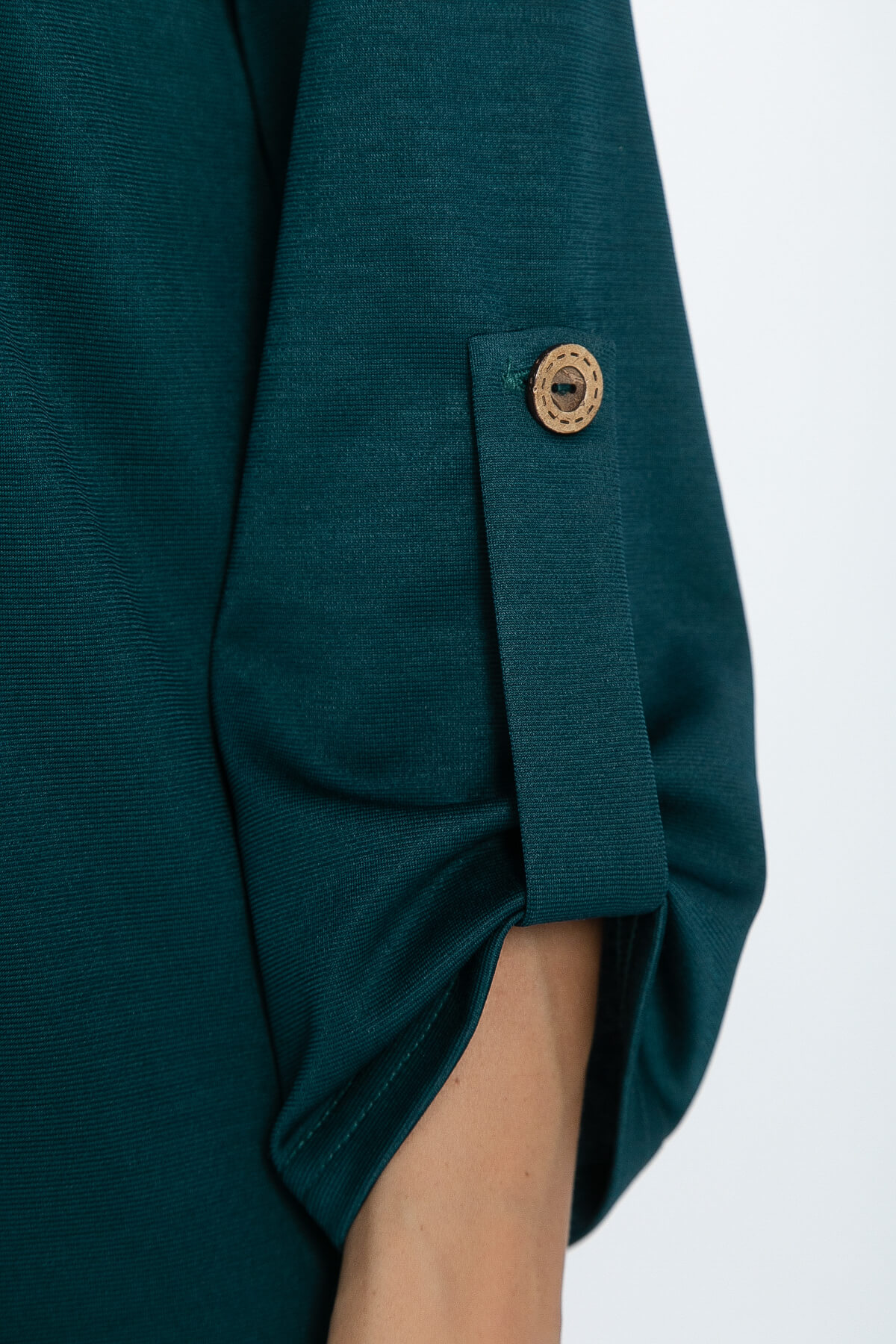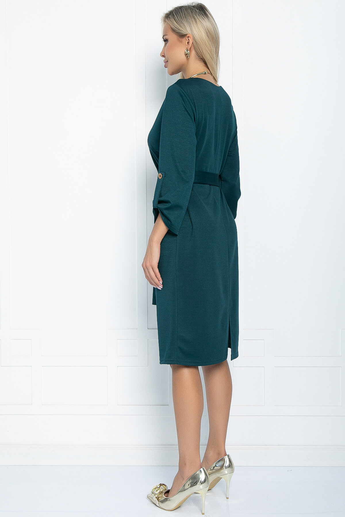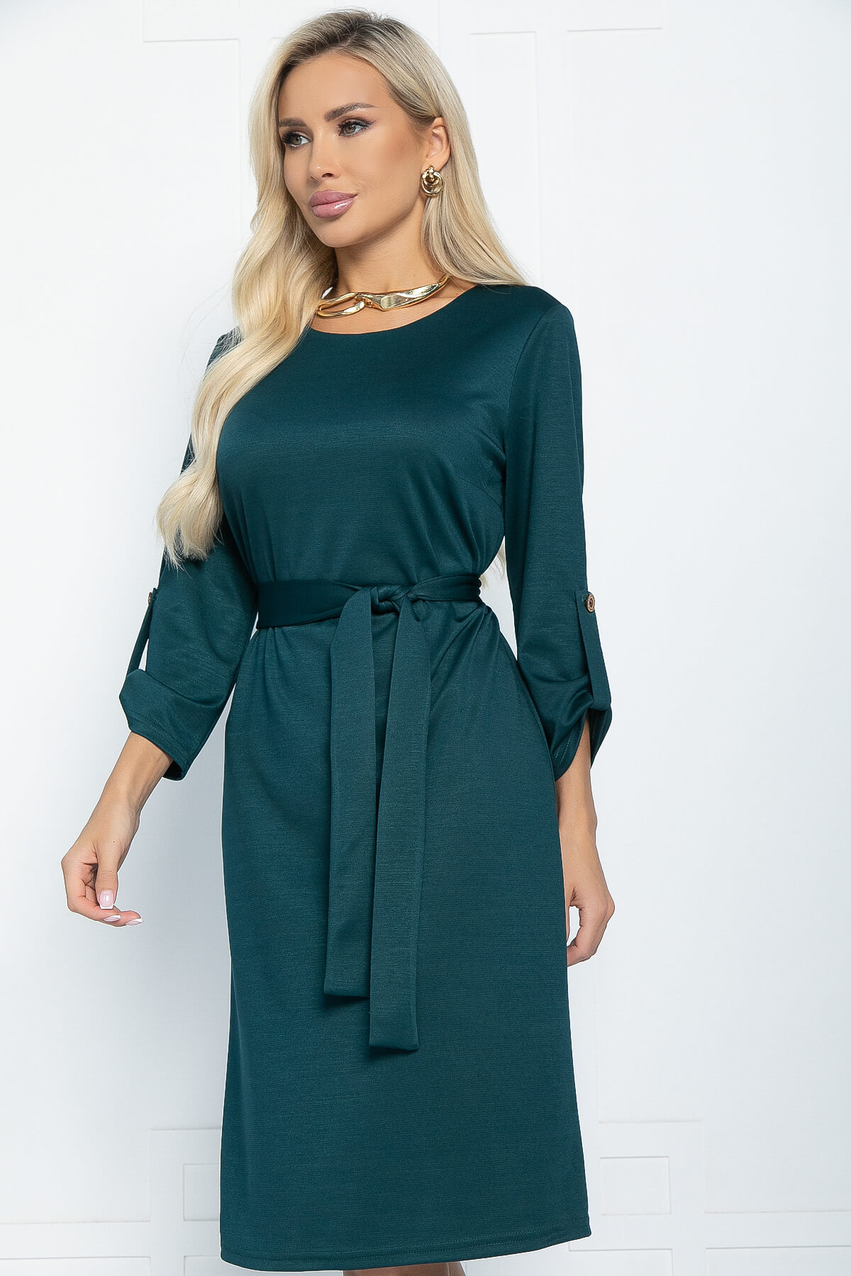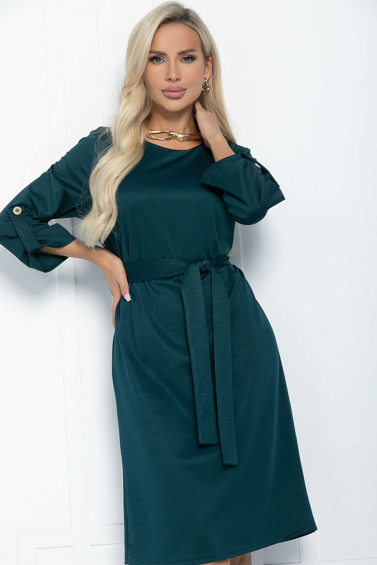 Базовое платье — это модель, которая сочетает в себе стиль и комфорт. Его рукав украшен декоративной патой, что придаёт ему особый шарм. Такое платье можно носить с любой обувью, оно универсально. А пояс из основной ткани изящно подчеркнёт вашу талию, сделав образ ещё более женственным.